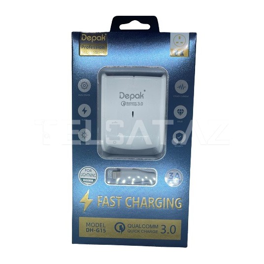 Depak DH-G15 Lightning Şarj Cihazı ilə telefonunuzu sürətli və effektiv şəkildə şarj edin! Bu yüksək keyfiyyətli şarj cihazı, telefonunuzun energetik tələbatını sürətli şəkildə qarşılayır və istilik və təhlükəsizlik üçün əlavə tədbirlərlə təchiz olunmuşdur.