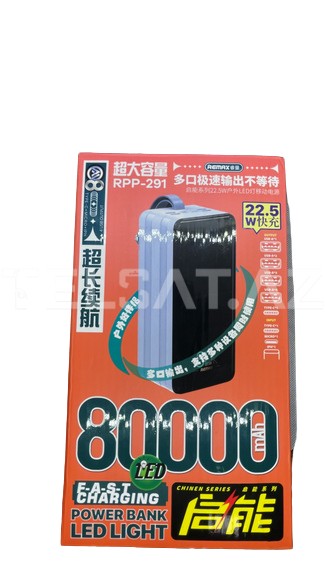 Remax RPP-291 80000 mAh Qara - Power Bank LED İşıqlı, güclü batareyası və işıq funksiyası ilə cihazlarınızı həmişə enerji ilə təmin etmək üçün əla bir seçimdir.