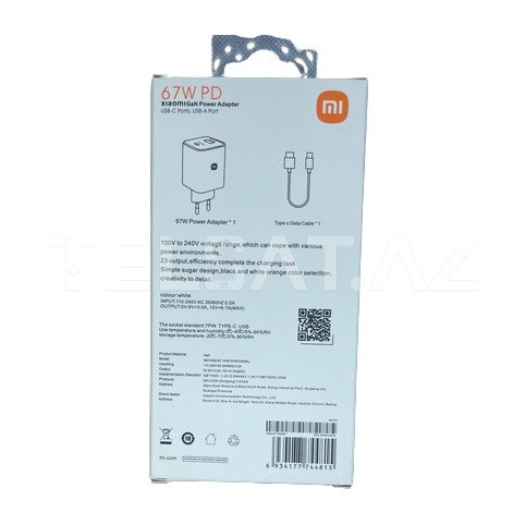 Xiaomi 67W USB Power Adapter MDY-K50-EF ilə telefonunuzun energetik tələbatını sürətli və effektiv şəkildə qarşılayın. Sifariş edin və yüksək performansın dadını çıxarın!