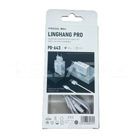 PRODA PD-A43 Charger, kompakt dizaynı və sürətli Şarj imkanı ilə cihazlarınızı effektiv şəkildə şarj etmək üçün əla bir seçimdir.