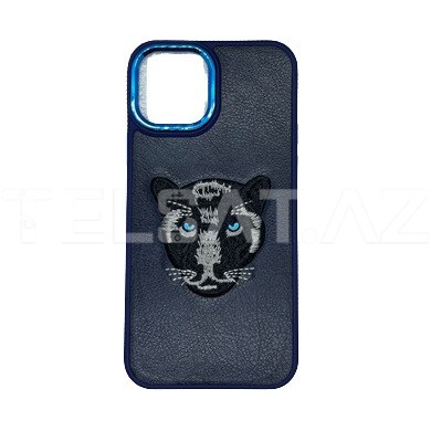 Tünd Mavi Rəngdə Pantera Dizaynlı iPhone 12 Telefon Qabı:
